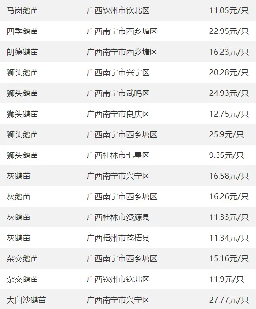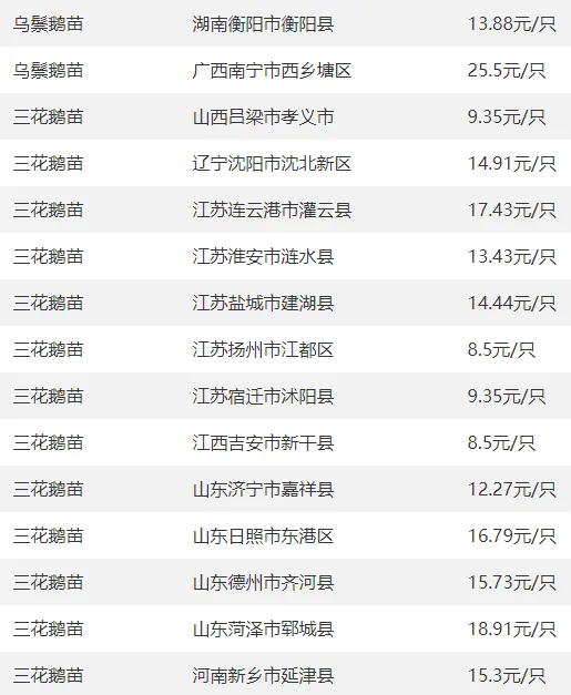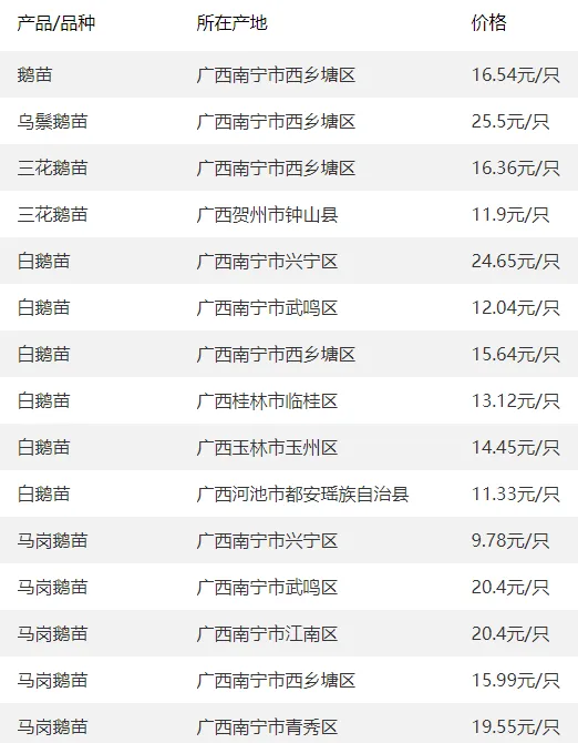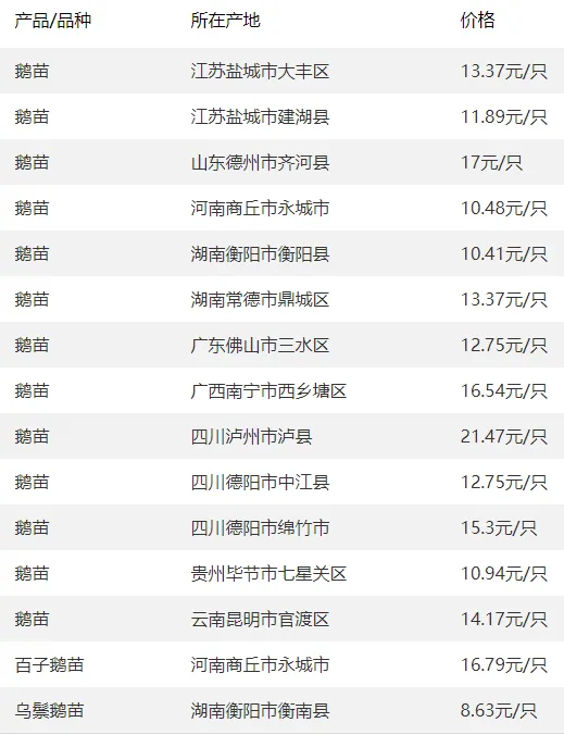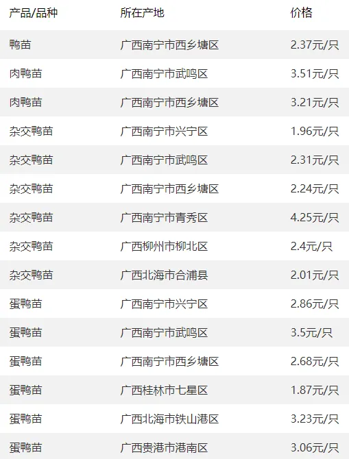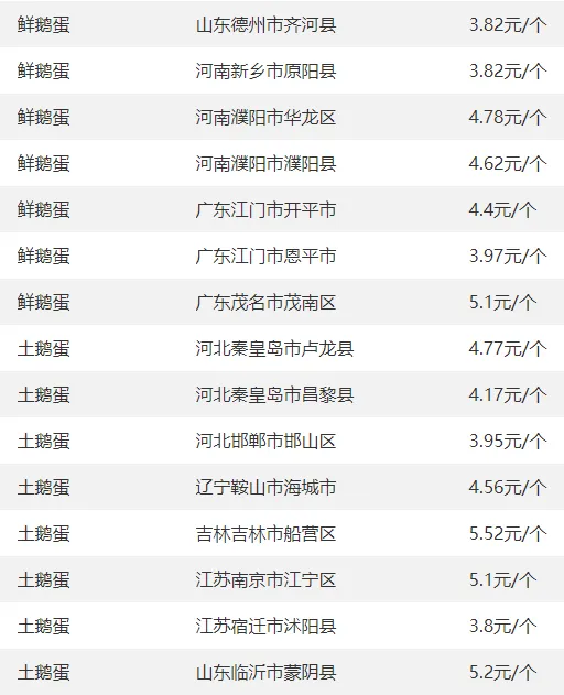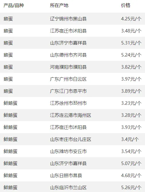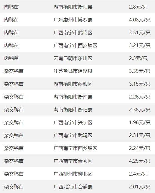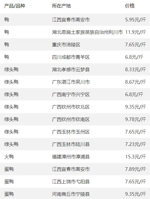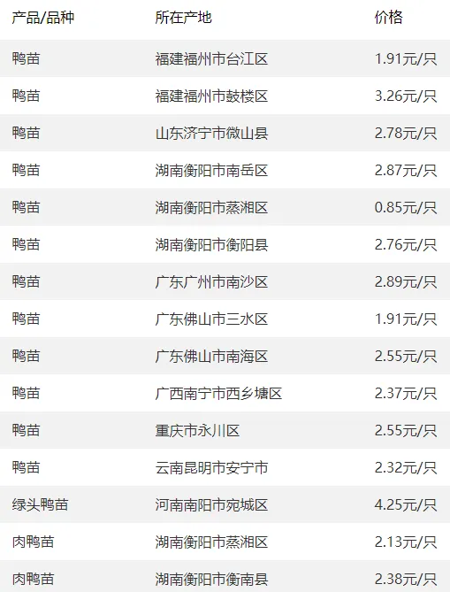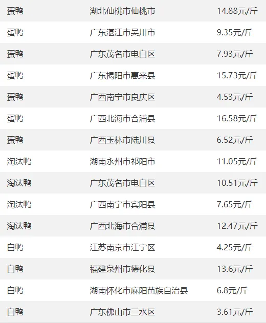 活鸭、鸭苗、鸭蛋、鹅苗等今日报价参考