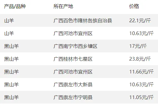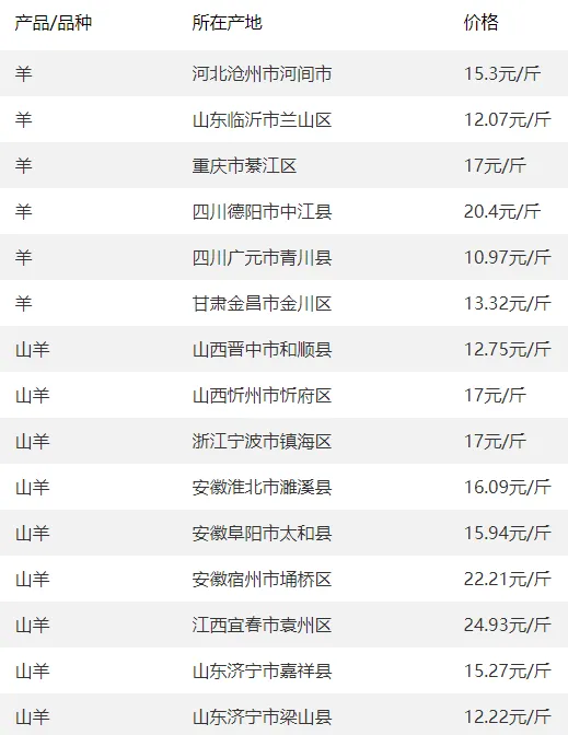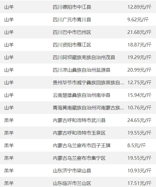 4. ?四川黑山羊价格坚挺,优质品类报价17.2-19.0元/斤,溢价优势显著。