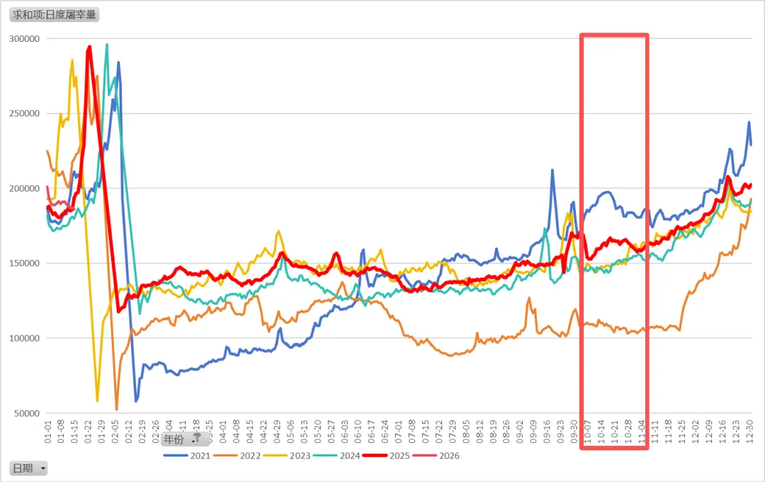在10月份的时候,体重出现一个月左右的持续下降,虽然同比仍偏高,但环比持续下降意味着市场短期库存得到了一定消化,无非是消化程度的问题,这与前两年情况相似。