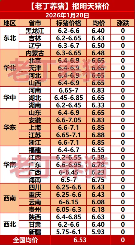 猪价有变!【明天猪价】1月20日全国猪价涨跌表!关注老丁养猪