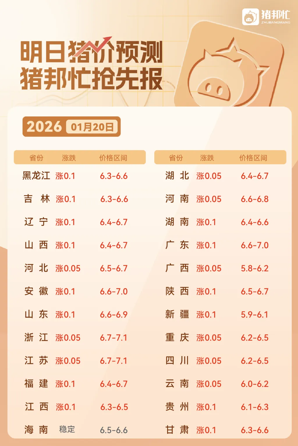 【明日猪价】2026.01.20:全面大幅上涨!!!