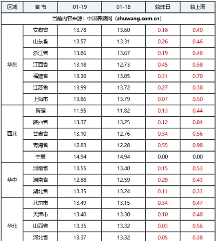 2026年01月19日-中国养猪网生猪(外三元)均价涨跌表