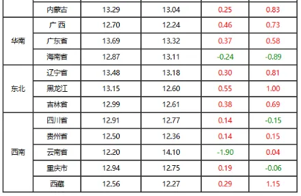 根据"2026年01月19日-中国养猪网生猪(外三元)均价涨跌表"发现,全国外三元标猪均价约为13.20元/公斤,较前一日上涨0.18元/公斤。华东地区猪价普遍居于高位;西北地区价格相对偏低。绝大部分省份较前一日实现上涨,青海、黑龙江等地涨幅明显,达到0.55元/公斤。仅海南、云南等少数省份价格有所回落,其中云南省单日下调帽度较大。