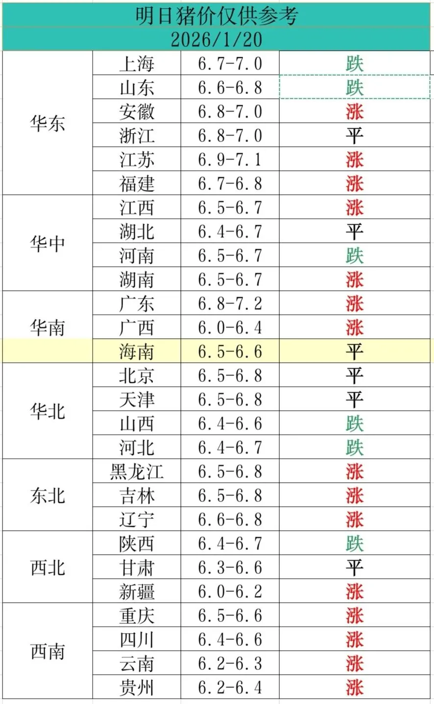 2026年1月20日全国猪价信息/供大家参考 养羊网 2026-01-19 2026年1月20日全国猪价信息/供大家参考 养羊网 2026-01-19 上一篇:猪价涨的有点“猛”,北方惜售情绪较浓,南方适重猪源供应偏紧! 下一篇:1月19日鸡蛋价格更新 您可能还会对下面的文章感兴趣111: 相关文章 最近鸡蛋真的好便宜哦! sims4|田园风农场小屋?种菜养殖|NOCC 大资本介入是养猪业的压仓石吗? 66块钱50个土鸡蛋还要便宜?限时再优惠10元!
