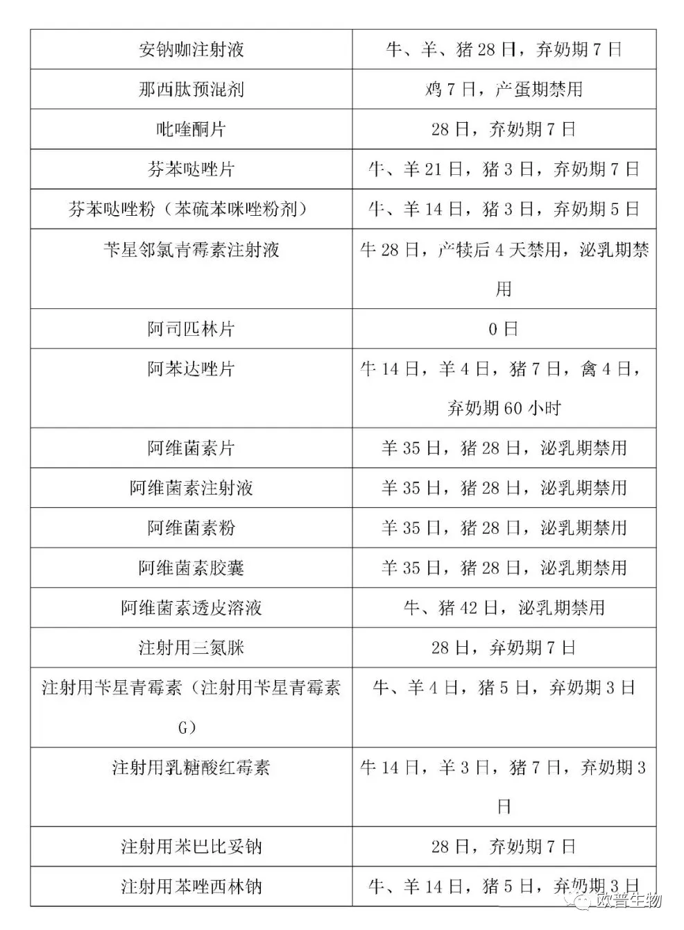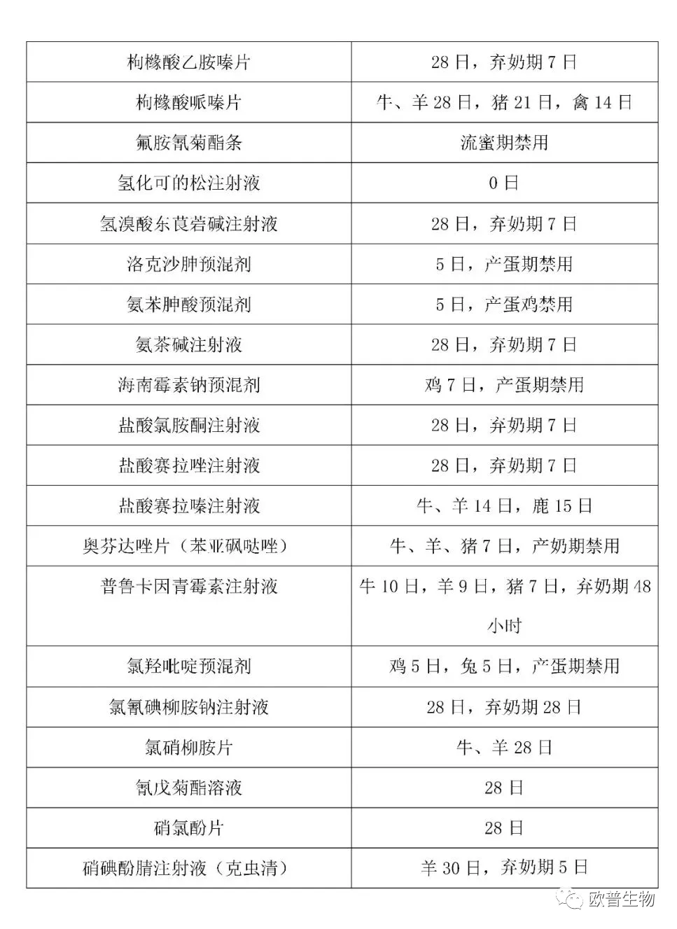 常用药停药期(点开放大观看)
