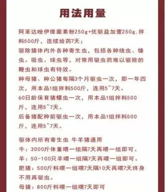 1、阿苯达唑伊维菌素粉,主要成份为阿苯达唑、伊维菌素、丙硫咪唑、槟榔碱,除了对蛔虫等线虫有明显驱虫效果外,同时加强了对绦虫、吸虫的驱虫作用。