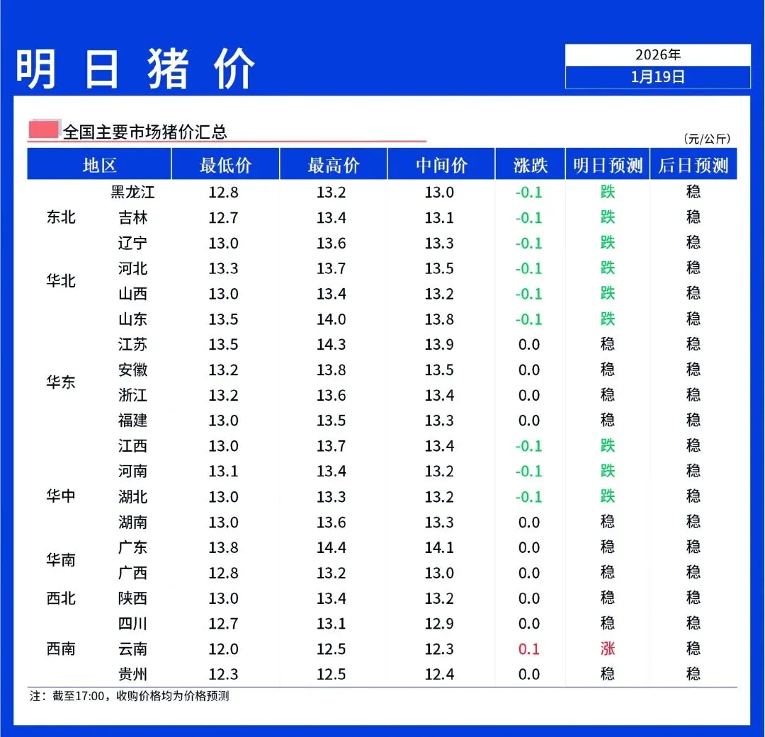 【明日猪价】1月20日全国猪价稳中偏弱!