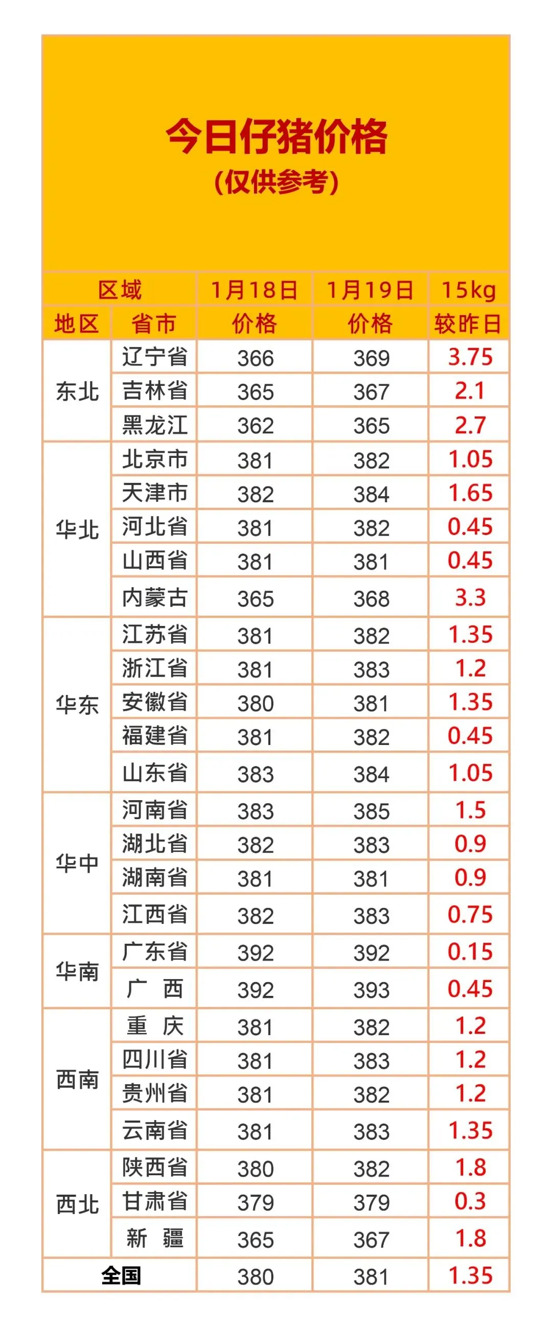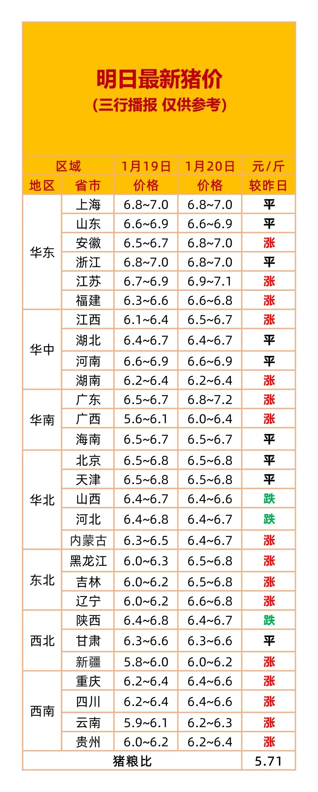 1月20日猪价格行情:多地猪价涨超7元! 最高广东7.2元,最低广西6元