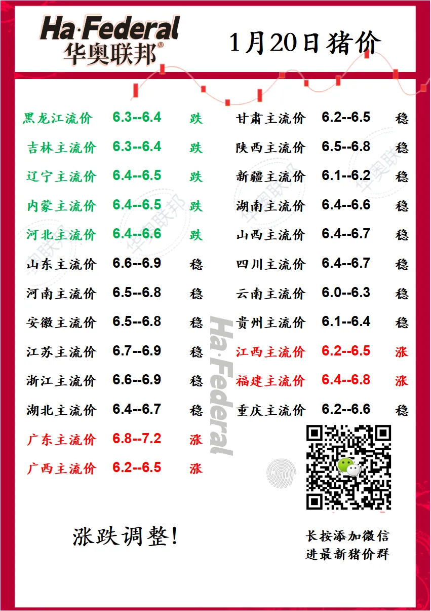 1月20最新猪价 风向变了? 养羊网 2026-01-19 1月20最新猪价 风向变了?进最新报价群 加微信 v联系电话:137 ?0084 ?5054 养羊网 2026-01-19 上一篇:今日猪价| 2026.1.20.明天猪价(只供参考) 下一篇:明日猪价|2026-01-20全国最新猪价(猪价已更新!) 您可能还会对下面的文章感兴趣111: 相关文章 每一只羊都是清清白白的~ 近期价格更新!!! 2025年4月13日全国各地生猪价格信息 【猪价预测】11月1日 ~11月3日!全国猪价!