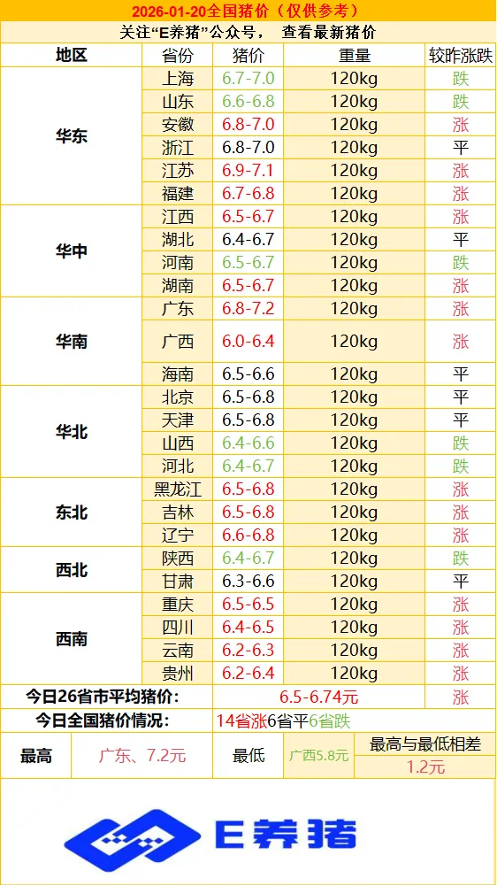2026年1月20日猪价(稳中调整) 养羊网 2026-01-20 2026年1月20日猪价(稳中调整)今日生猪形式八字总结:消费掣肘、稳中调整更多猪价咨询:猪场工作岗位信息: 养羊网 2026-01-20 上一篇:【全国猪价】 2026. 01. 20 千万别停!多地猪价有所降温! 下一篇:北弱南涨!!2026年1月20日猪价北弱南涨!! 您可能还会对下面的文章感兴趣111: 相关文章 济州岛第一顿黑猪烤肉 3月19日牛肉、羊肉、生鲜乳价格 哈尔滨可口香烧烤前三! 近期价格更新!!!