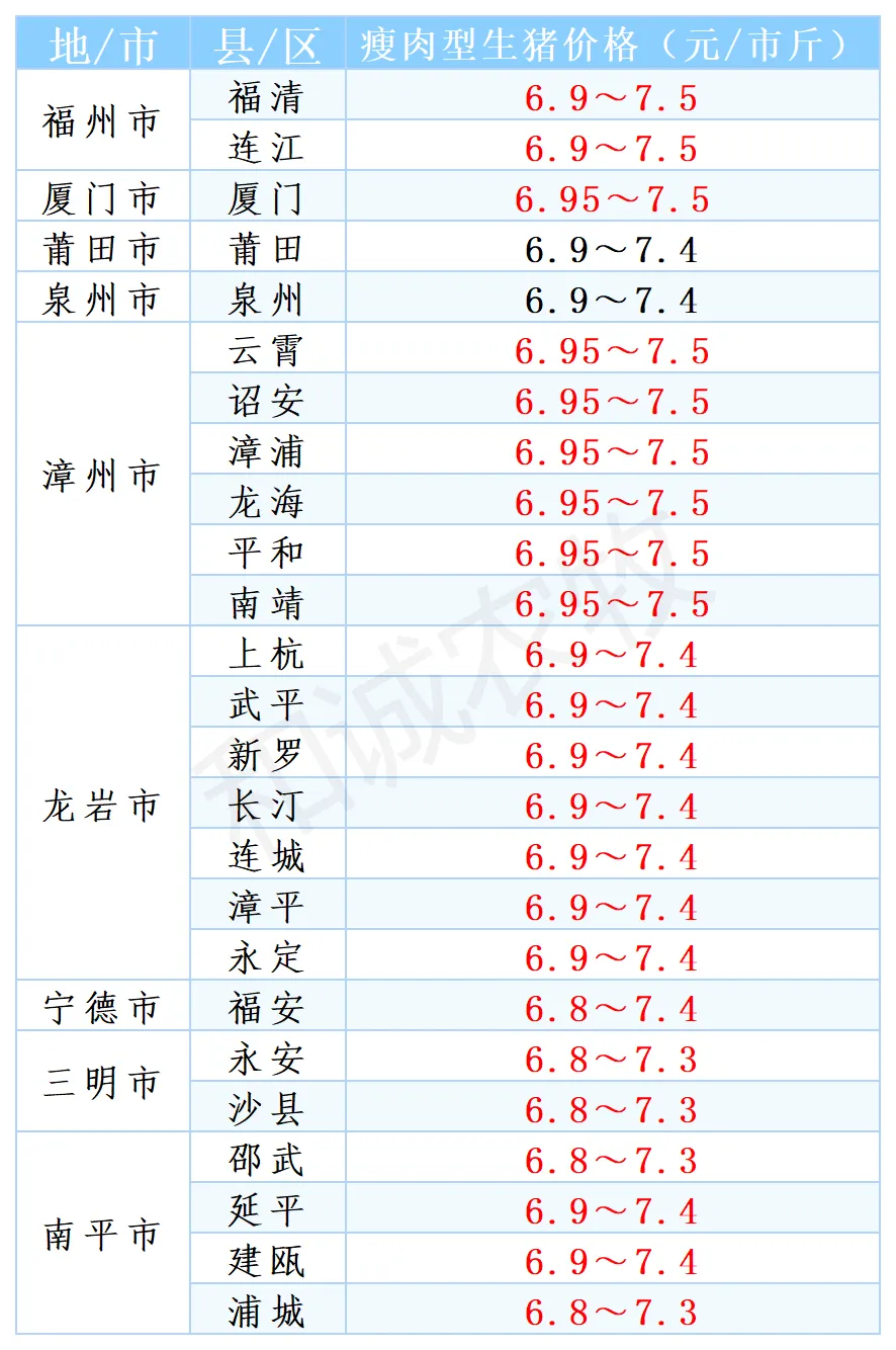 【猪价】2026.01.20福建各地区每日最新猪价