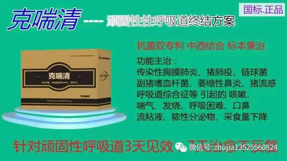 传染性胸膜肺炎,支原体,猪流感,猪肺疫,蓝耳病,副猪嗜血杆菌,呼吸道综合征,传染性萎缩性鼻炎引起的各种呼吸道问题,预防,治疗套餐—克喘清套餐