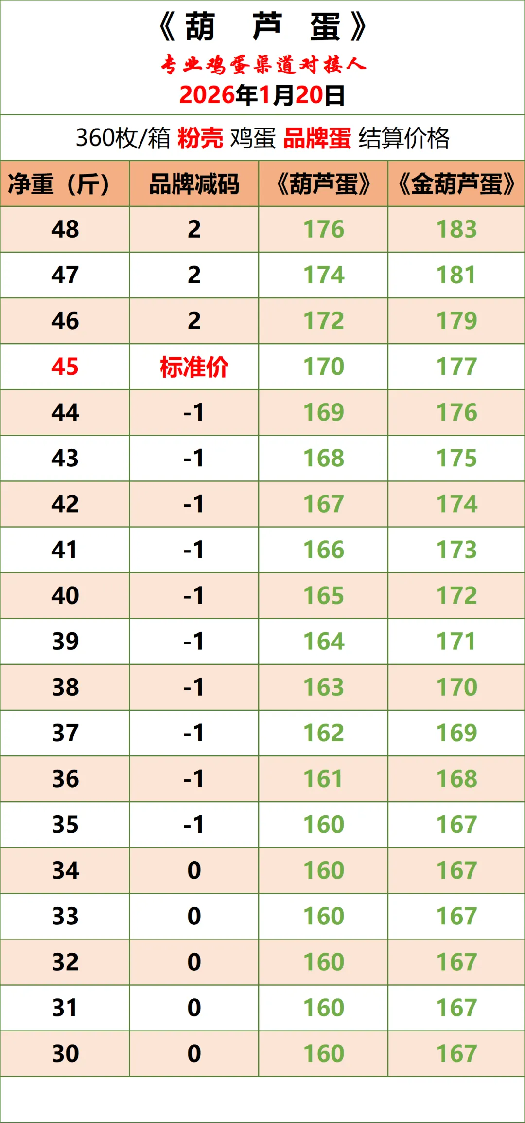1、以上价格为《葫芦蛋》平台公示的鸡蛋含包装成交结算价(上车价),仅供与本平台渠道对接伙伴参考使用,不与其他任何报价作比较。