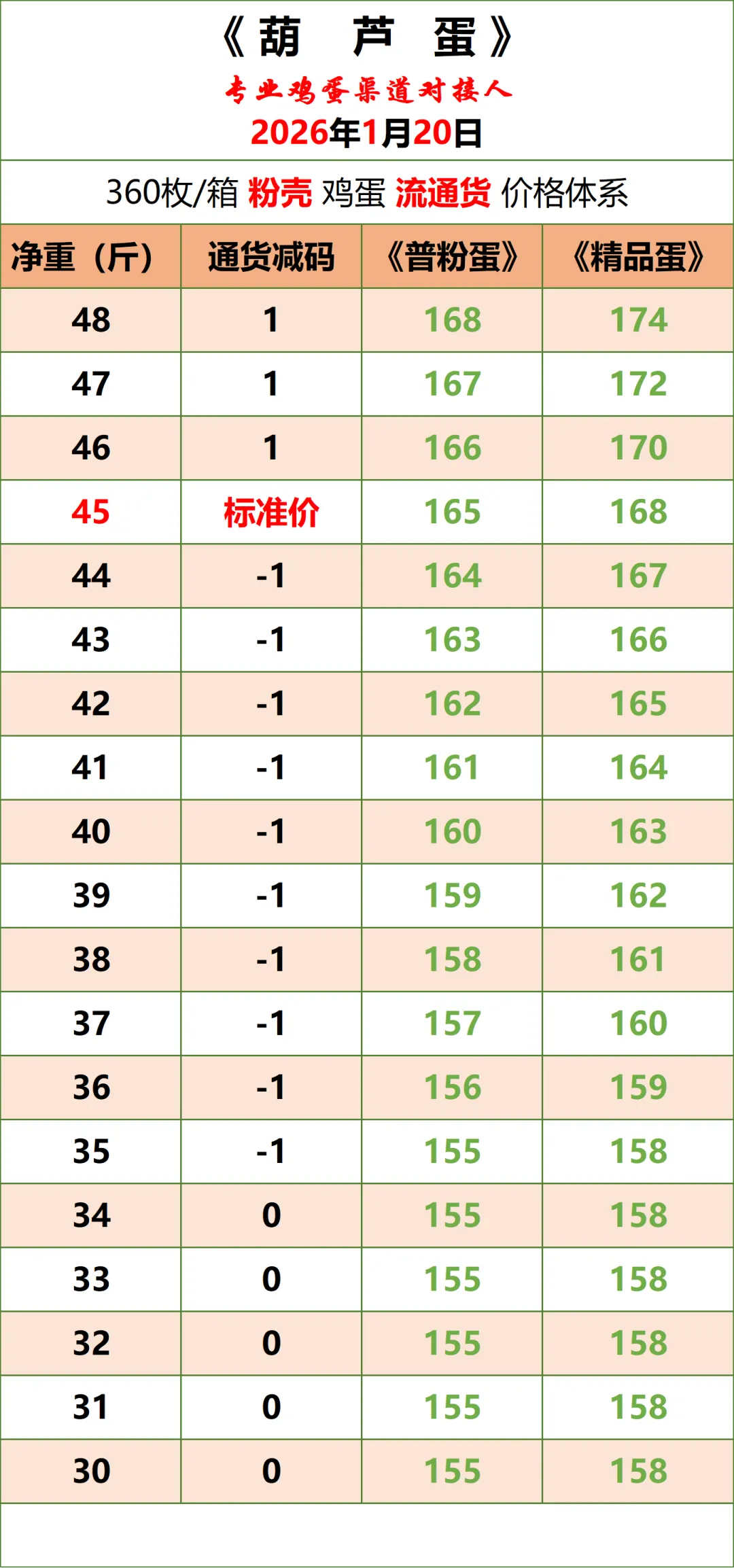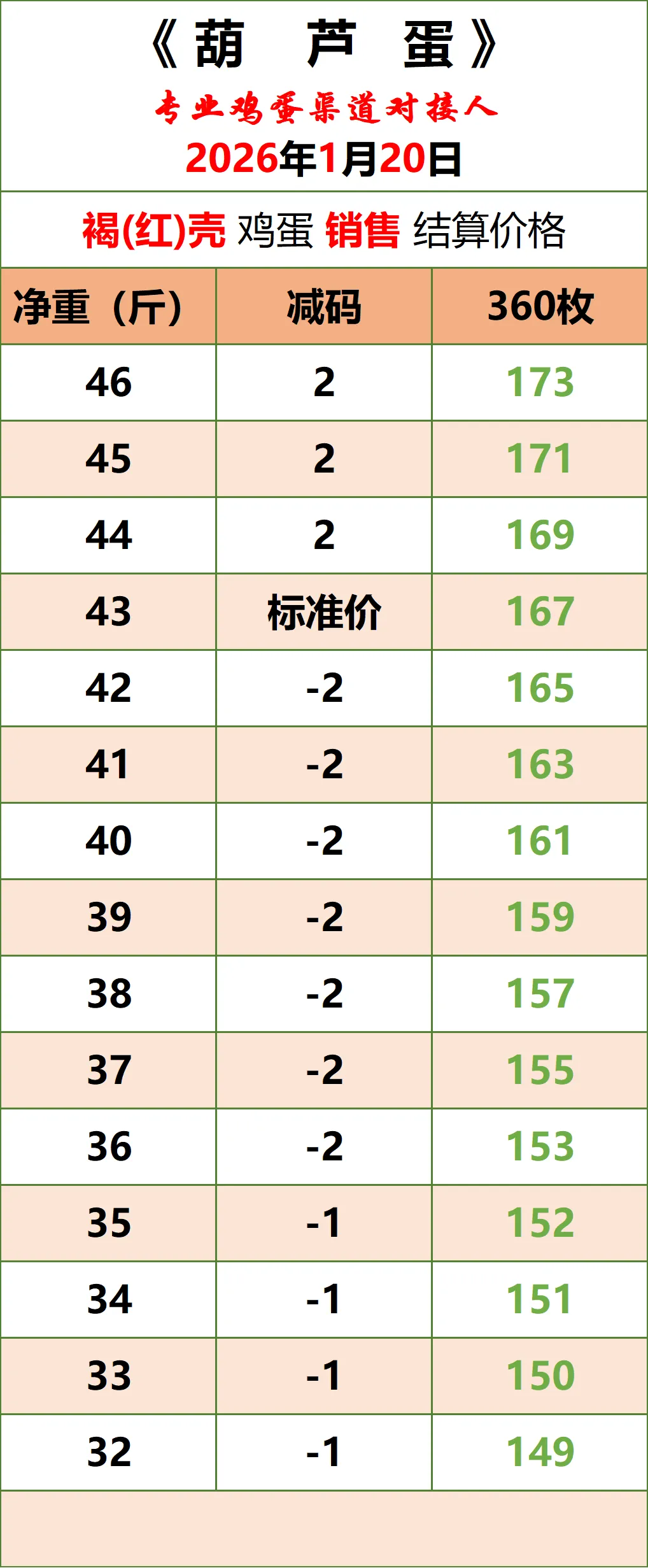 4、养殖场、贸易商日产量150件以上,可大车(至少6.8一车)直发的,支付合理信息维护服务费后,可按以上成交价格对接渠道,详情可来电约谈。
