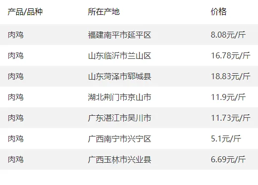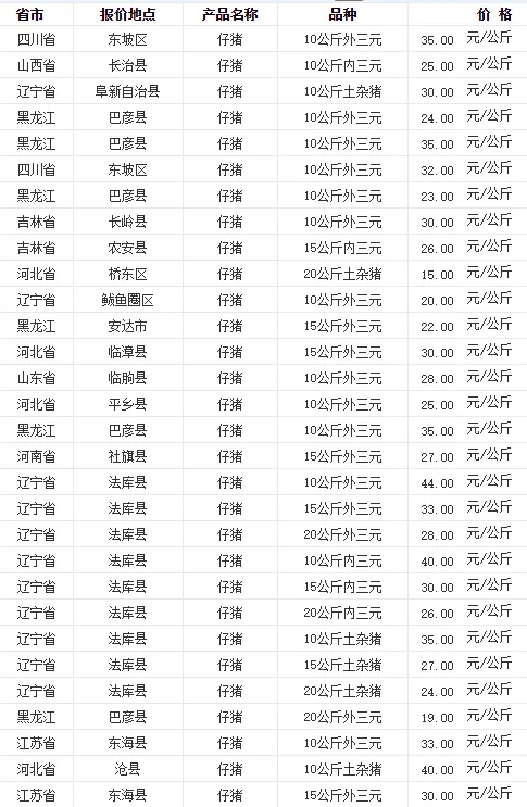 全国各地区今日猪价