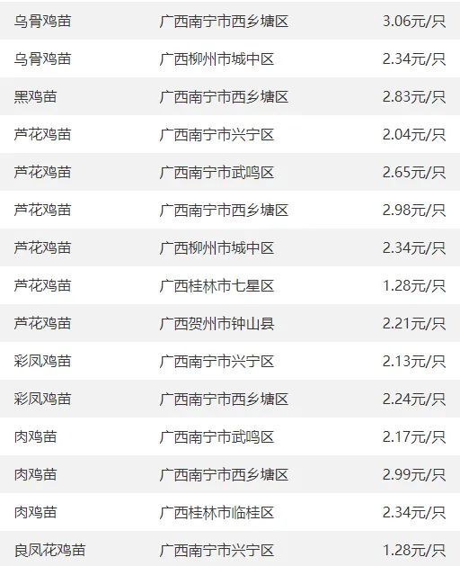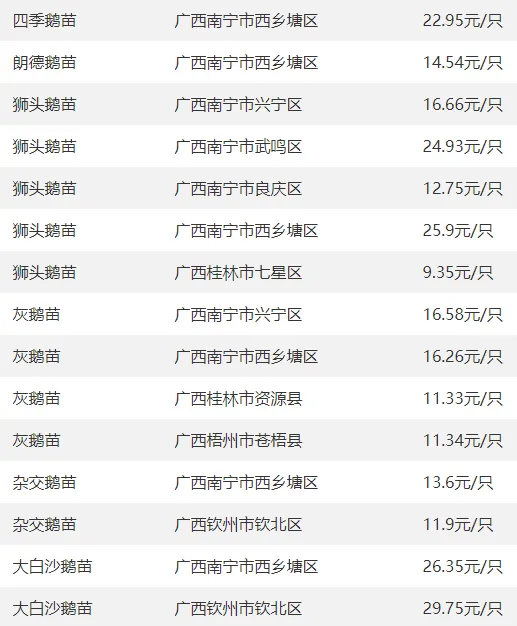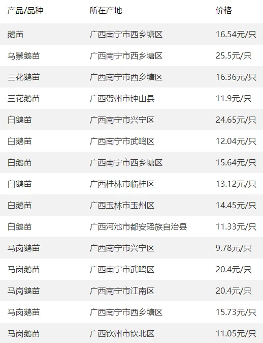 广西部分地区鹅苗价格参考