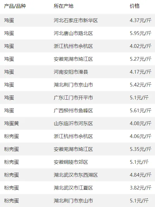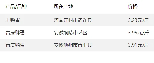 全国部分地区鸭蛋价格参考