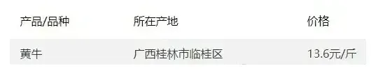 广西部分地区牛价