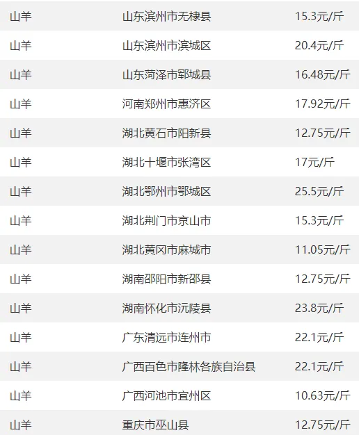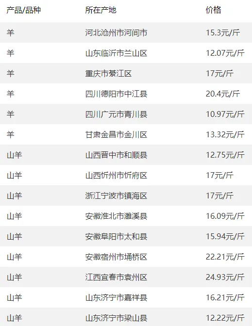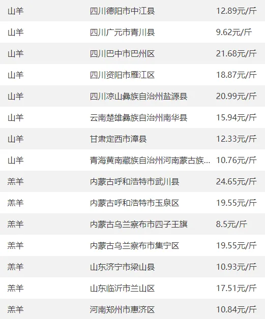 5. 重庆、四川黑山羊价16-18元/斤,云南部分绵羊报价13.5-15元/斤,优质品类走俏。