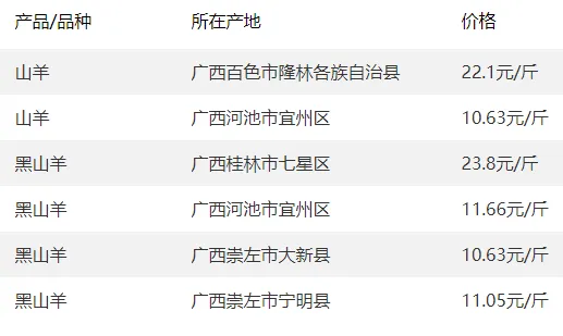 广西部分地区羊价