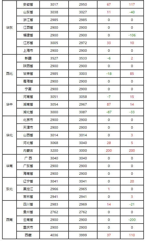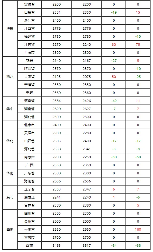 主产区方面,山东、河南、河北核心产区价格坚挺,山东临沂、潍坊红蛋报3.75元/斤,河南驻马店3.80-3.85元/斤;东北三省走势偏弱,吉林、黑龙江红蛋均价降至3.5元/斤,较昨日回落0.1元/斤。主销区北京大洋路、石门市场报3.7元/斤,走货顺畅,上海市场均价3.56-3.60元/斤,库存处于低位。