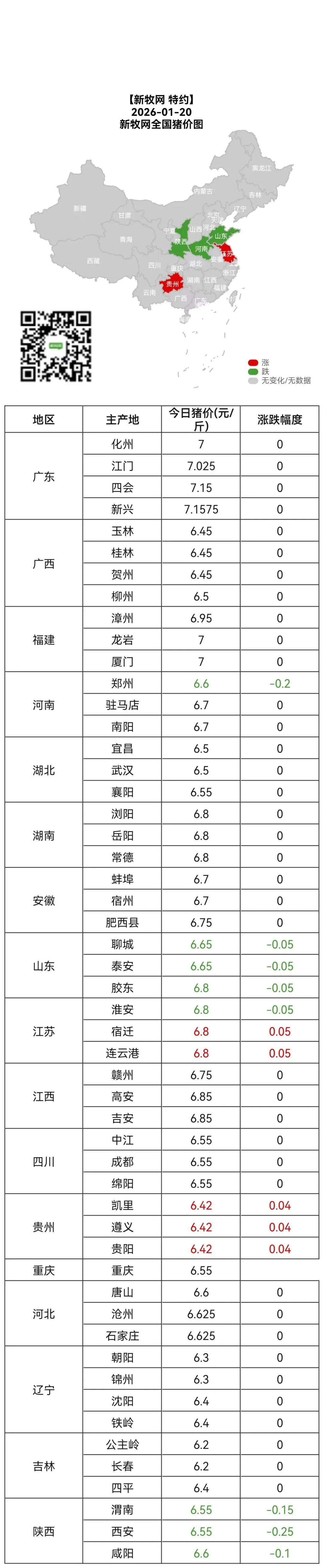 河南跌0.2元/斤||1月20日全国猪价指数 养羊网 2026-01-21 河南跌0.2元/斤||1月20日全国猪价指数◇◇ 为养猪鸡行业发出最强音?◇◇◇ 新牧网:xinm123.com◇原创声明:来源:农财宝典新牧网 养羊网 2026-01-21 上一篇:短暂猪价或有小幅下跌的走势 下一篇:1月20日全国猪价略有回落【动力猪价】 您可能还会对下面的文章感兴趣111: 相关文章 2025年4月13日全国各地生猪价格信息 只有刚开始一两次是好的,后面越来越差 怀疑了,那是他们自己住的房子吗 关于呼伦贝尔羊,今天唠唠心里话!