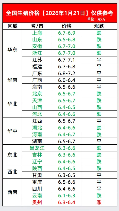 最新猪价 | 1月21日猪价预测:大转弯,下跌