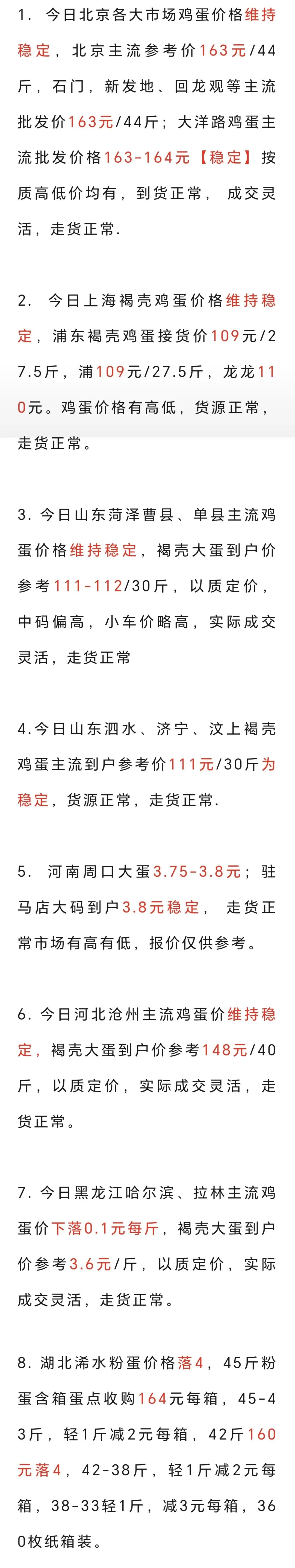 元月21日各地鸡蛋价格(涨) 养羊网 2026-01-21 元月21日各地鸡蛋价格(涨) 养羊网 2026-01-21 上一篇:【猪价早报】2026. 1 . 22 打回原形!猪价继续下跌! 下一篇:【明天猪价】 2026. 1.22日全国猪价 您可能还会对下面的文章感兴趣111: 相关文章 带爸妈吃了3次的贵阳清水烫,终于说对了! 近期价格更新!!! 台州黄岩卖羊,大小都有 帮上了年纪的邻居卖腊肉,30左右一斤