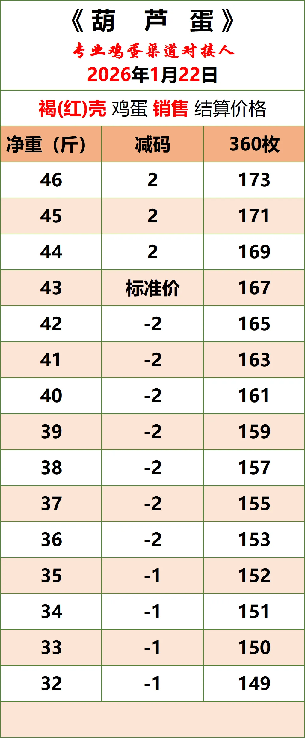 2026年1月22日《葫芦蛋》鸡蛋价格
