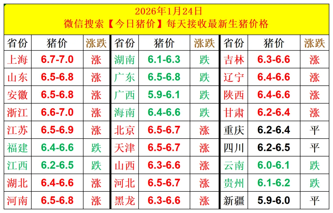 今日猪价|明日猪价2026.1.24(仅作参考)