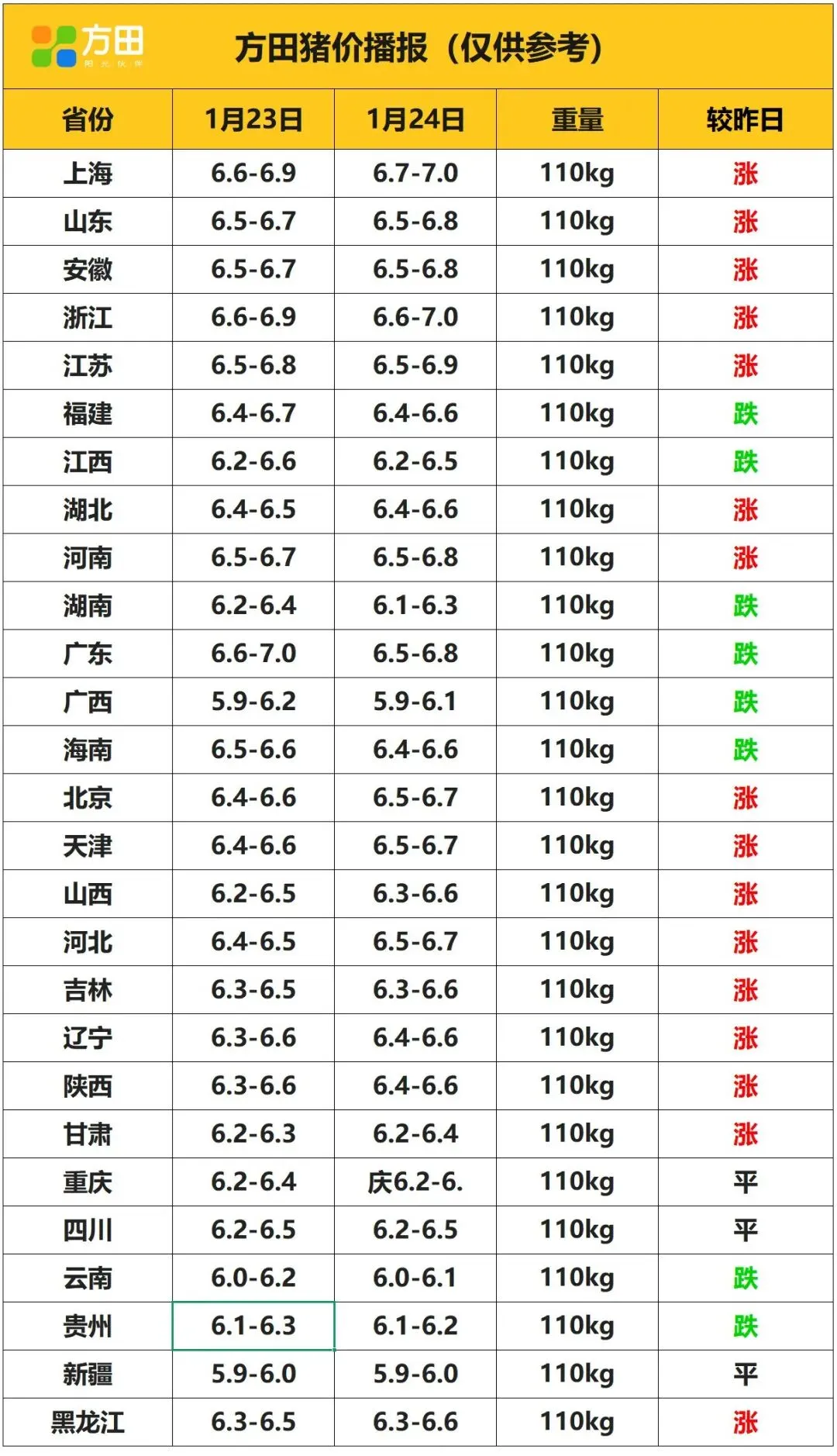 猪价丨1月24日 明日猪价早知道 养羊网 2026-01-23 猪价丨1月24日 明日猪价早知道 养羊网 2026-01-23 上一篇:【明日猪价预测】1.24 下一篇:2026年1月24日 鸡蛋价格 您可能还会对下面的文章感兴趣111: 相关文章 近期价格更新!!! 猪价震荡,是惜售自救还是供需陷阱?『生猪新闻2026年01月13日』 猪猪?的春天要来了 近期价格更新!!!
