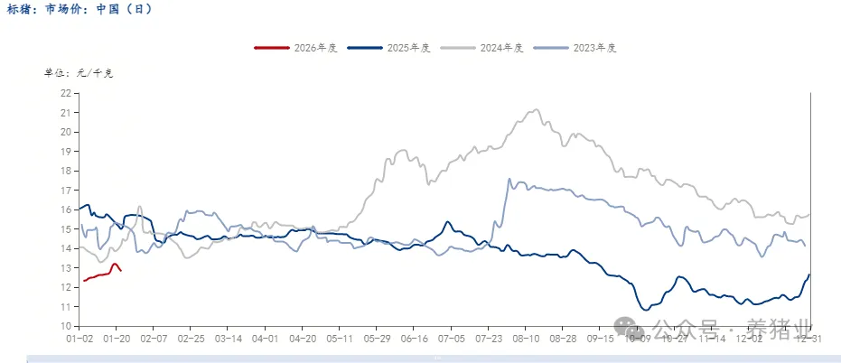 猪价月末能否破局上行?供需博弈陷僵持,消费“预期强、现实弱”近一月末,生猪市场步入供需博弈的关键窗口期。供应方面,受月度出栏节奏偏缓及局部区域压栏增重影响,月底会否出现集中放量成为当前主要的不确定性;需求方面,随着腊月深入,春节前备货需求逐步启动,叠加全国多地低温天气延续,消费旺季持续,共同为猪价形成支撑。在此背景下,市场关注焦点集中于猪价能否打破当前震荡区间,在月末延续上行态势。短期走势的最终方向,将取决于供需两端的实际力量对比与结构变化。 一、行情走势