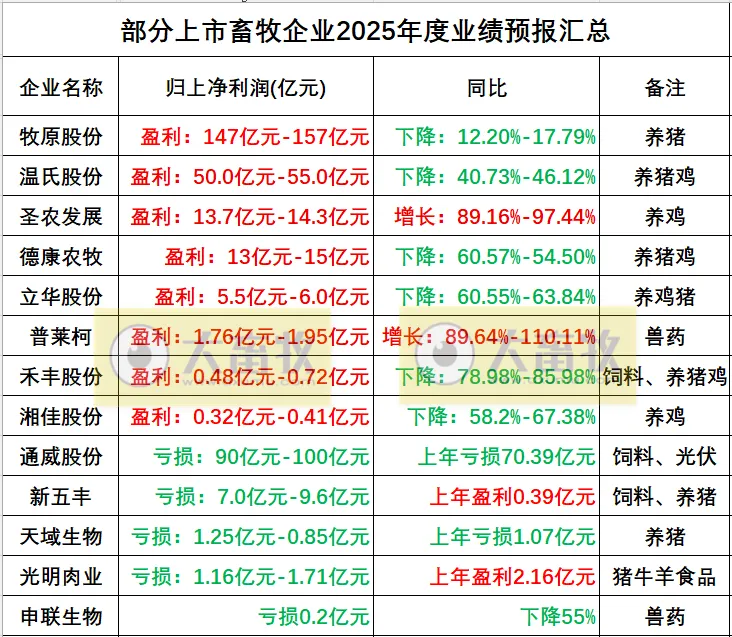 5、部分上市畜牧企业2025年业绩预告