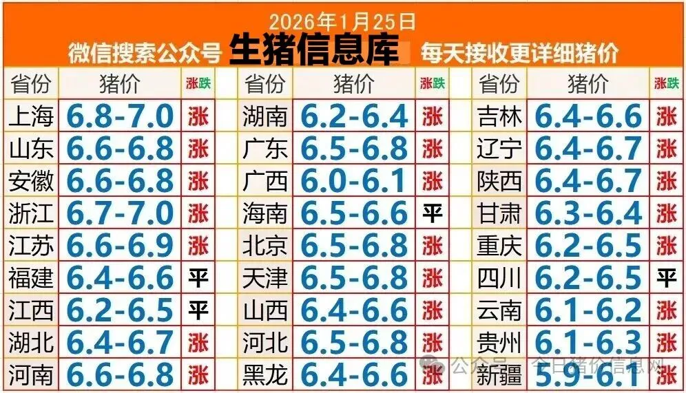 暴涨26.01.25猪价 养羊网 2026-01-24 暴涨26.01.25猪价 养羊网 2026-01-24 上一篇:明日猪价早知道,2026.1.26生猪价格 下一篇:1月24日猪价速递 您可能还会对下面的文章感兴趣111: 相关文章 第7天监督多多买菜,今天买蛋 pdd鸡蛋购物分享 你们以为这是救助站吗? 【明天猪价】 2026.1.15(指导价仅供参考)