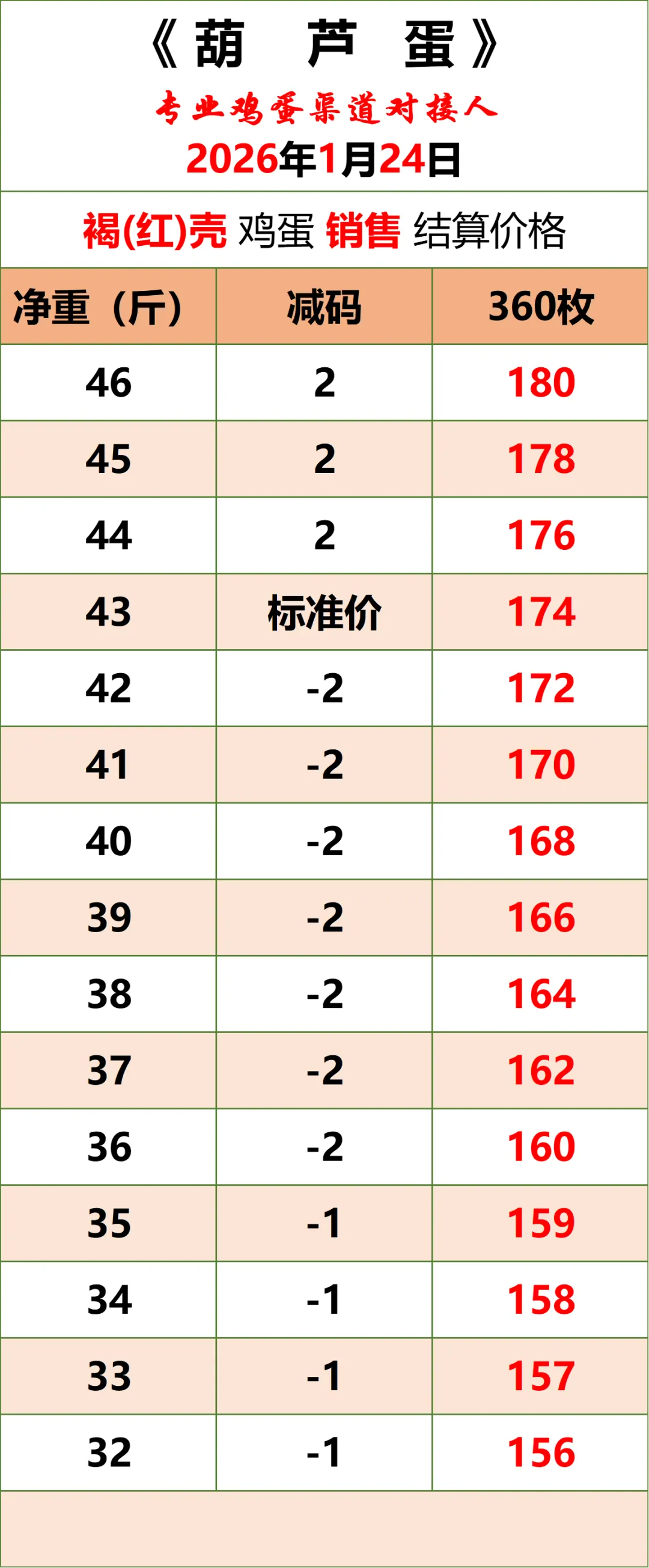 2026年1月24日《葫芦蛋》鸡蛋价格