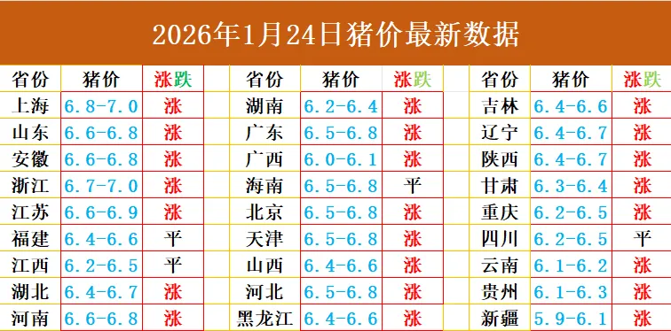 今日猪价| 2026.1.24.全国最新猪价信息(已更新)