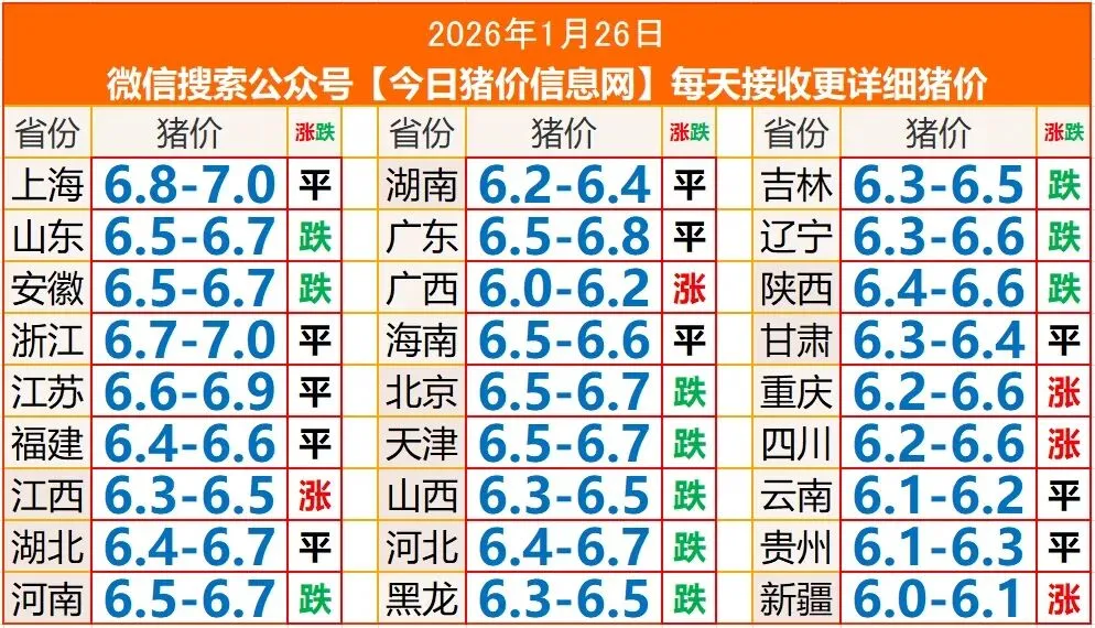 今日猪价| 2026.1.26.全国最新猪价信息(只供参考) 养羊网 2026-01-25 今日猪价| 2026.1.26.全国最新猪价信息(只供参考) 养羊网 2026-01-25 上一篇:【未来10天猪价大预测】1月27日~1月30日!全国猪价 下一篇:【明天猪价】2026.1.26涨涨涨!千万别停!多地再次下跌!只供参考 您可能还会对下面的文章感兴趣111: 相关文章 别发癫:字节为何边裁员边提高股权回购价 喜大普奔,羽毛球正式步入房价后尘 怎么成为千万富翁? 记录一下我曾经买的币