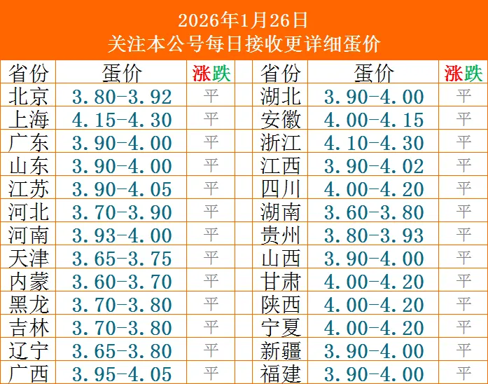 今日鸡蛋价格(2026年1月26日平稳)蛋价未来10天预兆