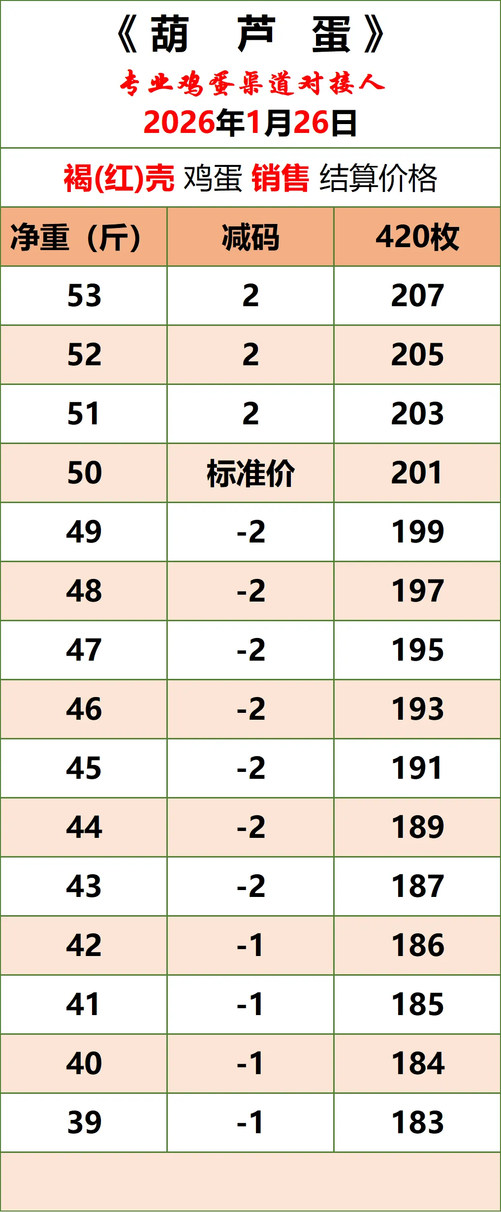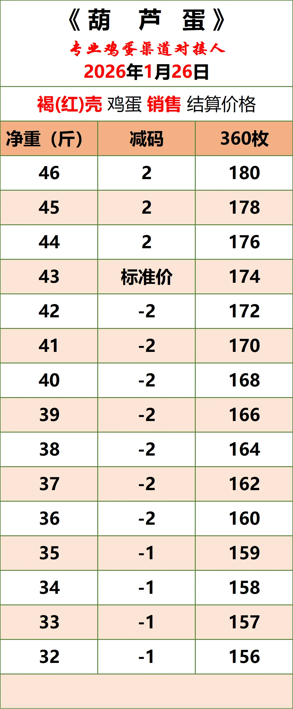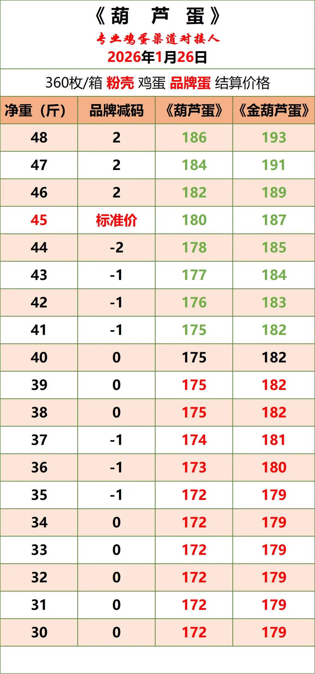 2026年1月26日《葫芦蛋》鸡蛋价格