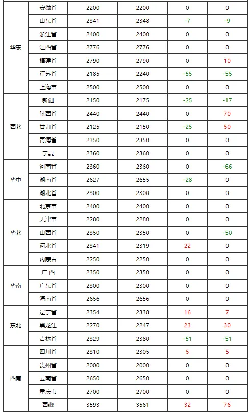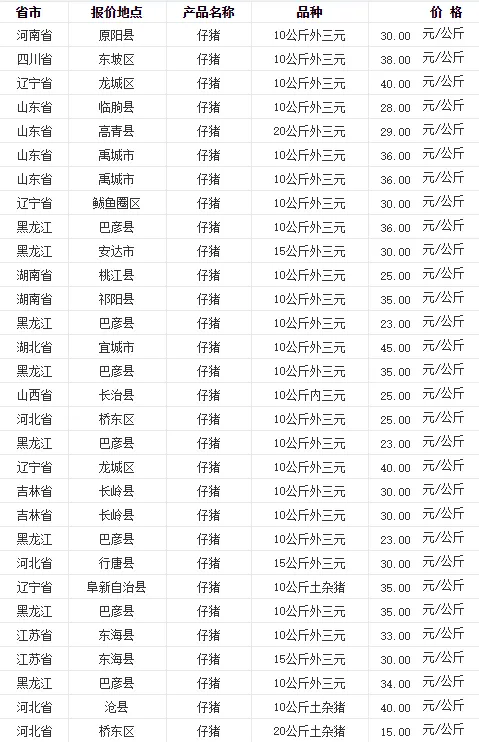 全国各地区今日猪价