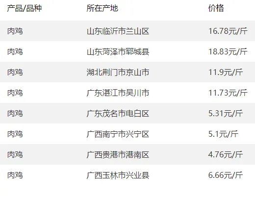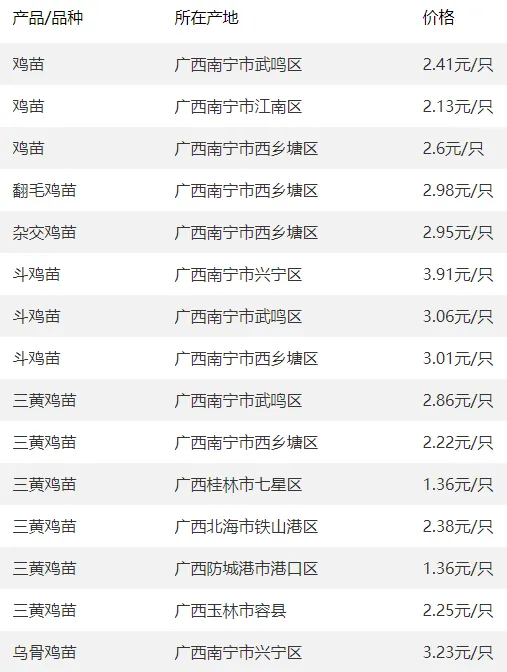 广西部分地区鸡苗价格