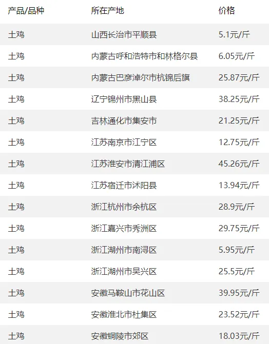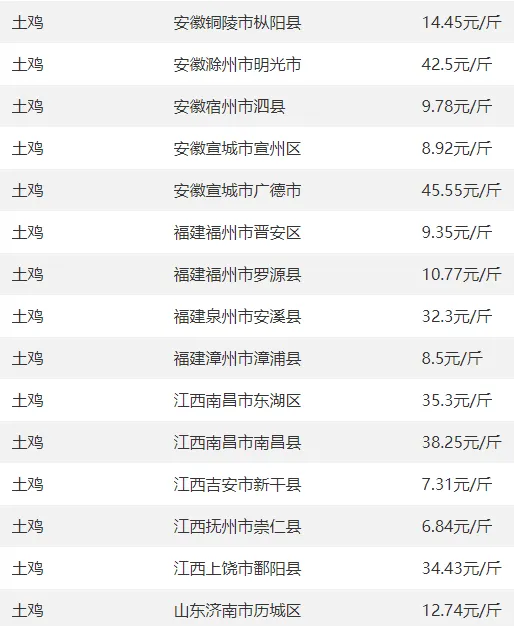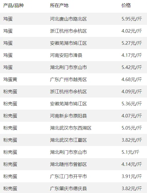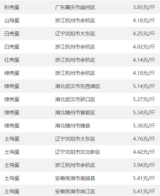 全国部分地区鸡蛋价格