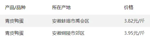 全国部分地区鸭蛋价格参考