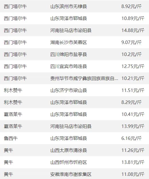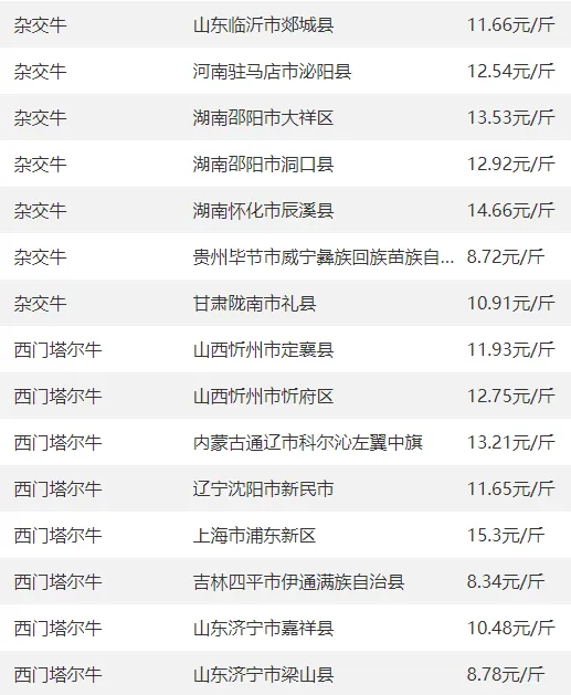 全国部分地区牛价