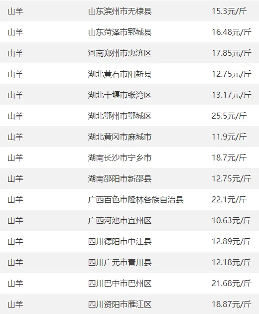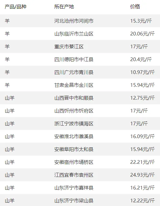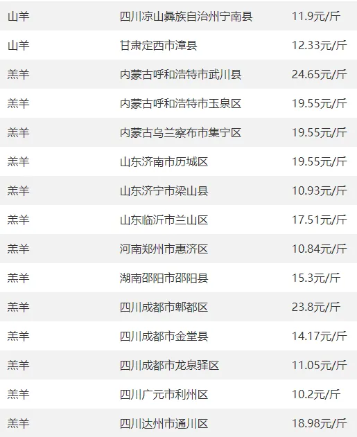 全国部分地区羊价