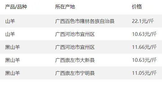 广西部分地区羊价