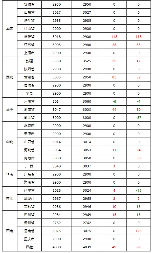 主产区方面,北京主流批发价173元/44斤保持平稳,山东、河南、河北多数地区报价持平,湖北浠水粉蛋小幅上涨2元,吉林成为东北少数涨价区域;主销区上海、广州报价稳中有势,终端走货虽有所放缓,但各环节库存偏低,支撑价格坚挺。