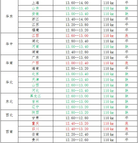猪价全面飘红,大部上涨,迎来一波反弹!全国生猪收购均价呈现上涨态势,标准体重生猪平均价格为6.50元/斤。猪价表现挺好,北方地区继续上涨,东北地区散户猪价偏强调整,标猪主流价6.5-6.6元,低价区6.3-6.4元,外调中大猪6.6元起,越大越贵,散户卖猪情绪一般,河南一哥出栏价格上涨1-3毛,价格在6块6到7块,散户稳中偏强1-2毛。