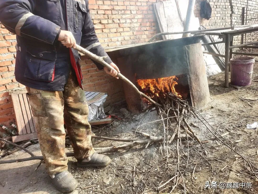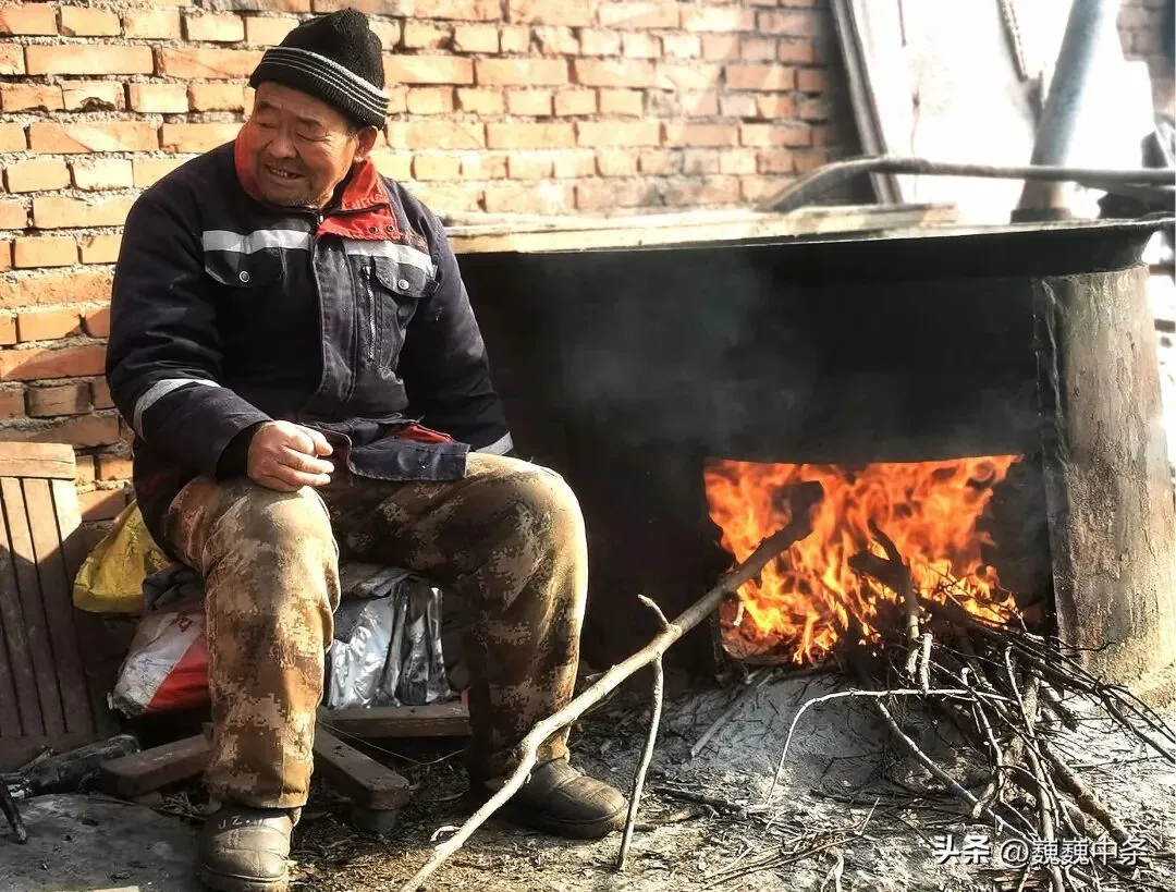 大叔拿柴为羊准备烧水烧料,简述养羊经验和收益情况