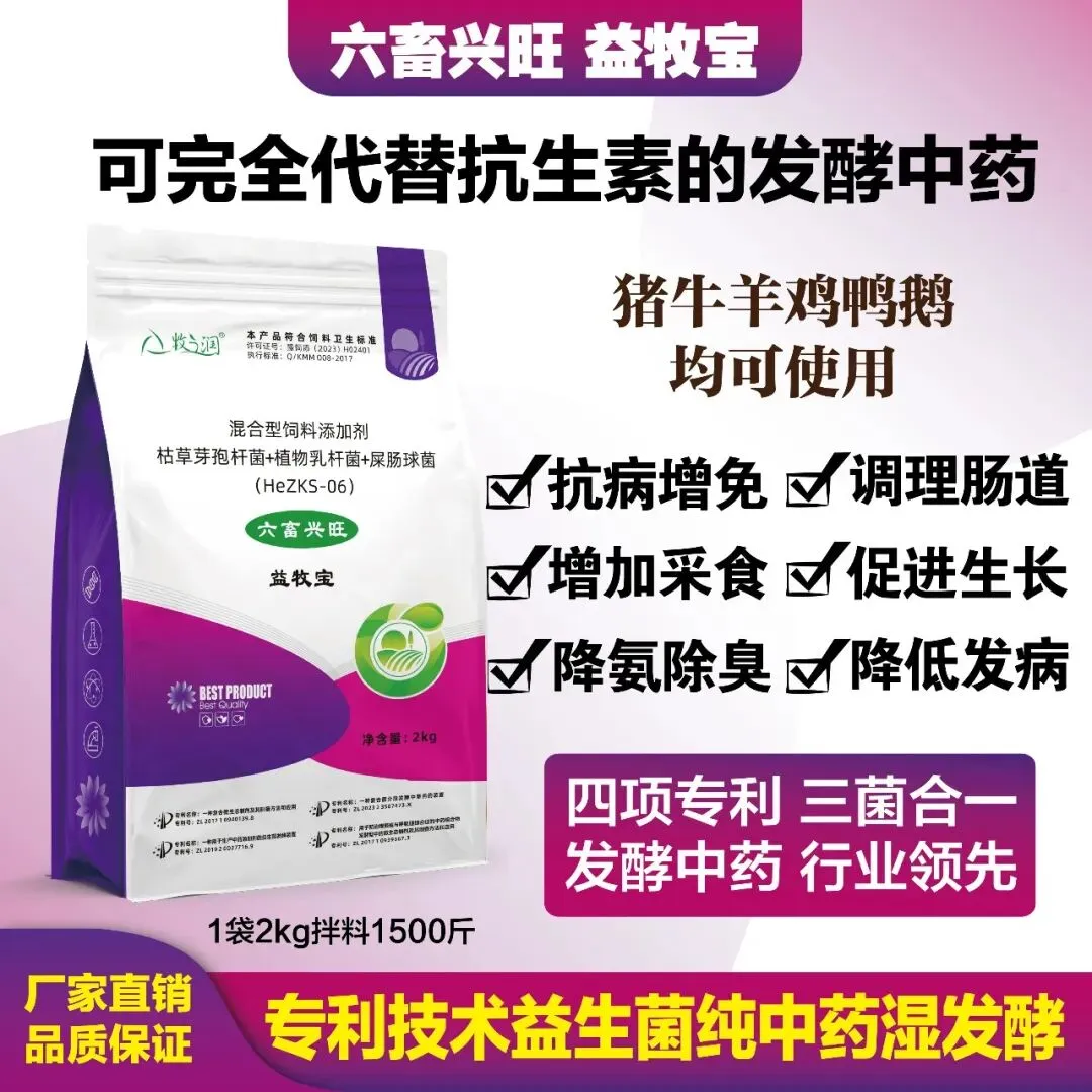 六大功效:益肠道、助消化增食欲、强抗病、提免疫、助生长、压制蓝耳。益牧宝是具有4项国家发明专利三菌合一的益生菌+纯中药湿发酵技术产品。